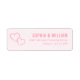 This return address label features a minimalist design with two interconnected hearts in a soft pink hue, creating an elegant and unified look. The clean white background enhances the simplicity of the layout, which includes modern sans-serif typography for clear readability. Perfect for personalizing invitations or announcements, this label conveys warmth and sophistication through its simple yet stylish composition.