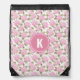 Elegant Pink Hydragea Flowers Pattern Monogram Drawstring Bag