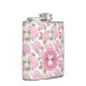 Elegant Pink Hydragea Flowers Pattern Monogram Flask