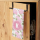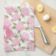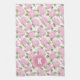 Elegant Pink Hydragea Flowers Pattern Monogram Kitchen Towel