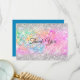 Elegant pink iridescent pink silver glitter monogram thank you card. Shimmering cute glittery Christmas card. Perfect for sending out to family or friends for the holiday season, birthdays or any other occasion. To make it extra special it is embellished with beautiful faux glitter. This design can also be transferred onto any product. You can personalize it with your own text and information.