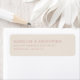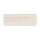 These return address labels feature a simple, elegant design with a soft pink background and clean typography. The layout is minimalistic, focusing on two blocks of text centered vertically and horizontally for a balanced look. The use of serif fonts adds a touch of formality, making these labels perfect for formal occasions or everyday mailings. Their understated elegance conveys refinement and subtlety, ideal for those who appreciate classic aesthetics.