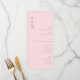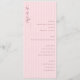 This elegant wedding menu features a soft pink background with subtle horizontal stripes, creating a gentle and sophisticated atmosphere. The minimalist design utilizes clean lines and smooth gradients, emphasizing clarity and refinement. Typography plays a key role, with a cursive script for the word "menu" and a formal serif font for the listed dishes, enhancing readability and formality. The color palette of pastel pinks paired with dark gray text provides an inviting tone, perfect for a luxurious and tasteful event.