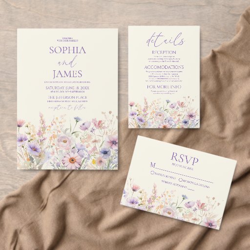 Elegant Pink Purple Wildflower Meadow Wedding Invitation
