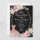 Elegant Pink Rose Black Quinceañera Quince Tiara Invitation