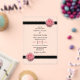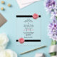 This design features elegant pink rose flowers. The floral pink roses combined with the elegant black ribbon image create a sophisticated simple border framing the wording. The pink tones of the rose flowers contrast against the black ribbon and wording creating a chic elegant style. The reverse side mimics the other side. Elegant wedding invitation design with modern elements. Matching wedding stationery items and other wedding invite formats are also available.