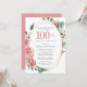 Elegant Pink Rose Floral 100th Birthday Party Invitation