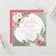 Elegant and classy pink and white rose floral with sage green greenery "Birthday Party" script text design with geometric gold-toned lines circular frame.