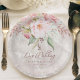 Elegant Pink Rose Peony Floral Marble Wedding Paper Plates