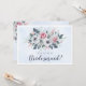 Beautiful "will you be my bridesmaid" card design featuring pink and white watercolor flowers on a pale blue background. Matching items available.