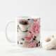 Elegant pink roses, ribbons, bows, monograms coffee mug