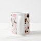 This coffee mug features a sophisticated and feminine design, incorporating soft pink roses, delicate satin bows, and scattered coffee beans on a textured, light gray background. At the center of the design is a monogram encased in a soft pink border, adding a personalized touch. Monogram initials, also appears on the miniature coffee cups integrated into the pattern on both sides of the mug, creating a cohesive and charming aesthetic. Ideal for gifting or personal use, this mug beautifully combines elegance and coffee-inspired warmth. Replace the current monogram initials with your own desired initials.