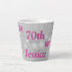 Elegant pink sparkle personalised Happy 70th Birthday Latte Mug.