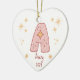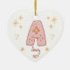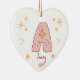 Celebrate your baby girl's first Christmas with a Personalized Baby Girl's First Christmas Heart Ceramic Ornament. The front features an adorable "A" design, perfect for names starting with this initial. Customize the name and year for a unique keepsake. Add a photo on the back for a cherished family memory. Order today to create a treasured holiday tradition!