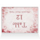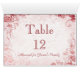 Beautiful vintage floral design table seating number place card for your special day. The text can easily be customized for any occasion wedding, baby shower, anniversary, graduation, sweet sixteen, birthday or other party event. The table number card is designed to be turned inside out so that the design is visible from both sides. You can also add guests names or other seating information by using the "Customize It" menu. This design also comes on many other paper products and also postage to suit all your wedding set needs.