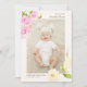 This stylish and elegant 2-sided photo birth announcement card features four (4) photos (front & back) of your newborn baby girl, custom text that can be personalized, hand painted watercolor illustration of pink camellia and white magnolia flowers. Customize this template product by adding your newborn baby's name, birth record, and the parents' names.