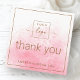 Square mini business thank you insert cards featuring a pink watercolor background and your custom logo and text. An elegant, classy design for thanking your customers.
