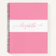 This pink and white color block notebook features an elegant spelling of a name, which you can personalize.