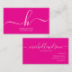 Elegant Pink White Monogram Initial Script Name Business Card