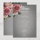 Elegant Pink White Roses Floral Gray Wedding Menu