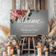 Indulge in timeless elegance with this exquisite wedding welcome sign. The realistic floral border, adorned with soft dusty blush pink and white rose and delicate white blooms, creates a romantic and sophisticated atmosphere. The medium gray background, highlighted by a soft white transparent blur, adds a touch of ethereal beauty. The elegant white text completes this classic and timeless design. This invitation is the perfect choice for a couple seeking a sophisticated and unforgettable wedding celebration. Created by Simply Farmhouse Press.