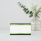 Elegant white wedding reception place cards. A pretty pale green satin looking ribbon on the top and bottom edged with a black stripe, over a white background. Lovely seating place cards ready for you to hand write your guests names on. Matching Table number cards available.