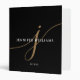 Elegant Plain Black Gold Script Monogram Recipe 3 Ring Binder