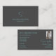 Elegant Plain Gray Teal with Monogram and Photo Business Card