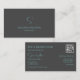 Elegant Plain Gray Teal with Monogram and QR-Code Business Card