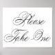 This beautiful and timeless horizontal "Please Take One" favor or program table signage adds a simple elegance to any classic wedding reception, shower or party motif. The luxurious script design features a whimsical and romantic modern black calligraphy lettering. The lovely font with a customizable background color makes it easy to fit any theme. For other colors or matching products, please visit the JustFharryn Zazzle store, or contact the designer, c/o Fharryn@yahoo.com All rights reserved. #zazzlemade