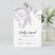 Elegant plum and gray floral with dots wedding rsvp. This card features black text.