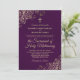 Elegant Plum Purple & Gold Modern Catholic Wedding Invitation