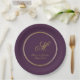 Elegant Plum Purple Gold Monogram Script Wedding Paper Plates