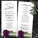 This beautiful wedding program features an elegant design with a single long stemmed pale plum purple or eggplant colored rose lying on its side reflecting in water. The titles are written in fancy script calligraphy, and there is space for your ceremony and wedding party details, as well as a short thank you for your guests. Wonderful way to welcome your friends and family to your wedding celebration.