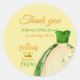 Watercolor painted yellow, orange and green colors Farytale Aesthetic Princess and the Frog themed with gold crown and dress bridal shower Thank you Classic Round Sticker you can personalize to your needs. This Whimsical enchanted theme will bring your guests to a magical atmosphere. Matching items you can find in collection from my store PatternDigitPics.