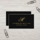 An elegant, professional business card that can be used for any industry. The business card features a fancy script custom monogram, gold text, black background, and simple layout to showcase your name/business name. Change the font style, move text, and more, by clicking on the Customize It button.