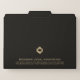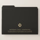 Keep your documents organized with our Elegant Professional Customizable Black File folder. The solid black background and brushed gold geometric diamond logo enhance the appearance of your files, making them suitable for law firms and attorneys, consultants, advisors and any professional looking to organize their documents in style. Maintain a polished and organized workspace with this essential tool.