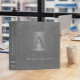 Luxury modern monogrammed office or school work organizer binder featuring a faux silver metallic square and dividers over a stylish vintage gray faux leather look (printed) background. ++++++++++++++ Suitable for small business, home office, corporate or independent business professionals, personal branding or stylists specialists, managers, teachers, students.
