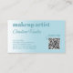 Beautiful elegant minimalist style artistic makeup artist business card. Contemporary light ocean blue colored business card with a modern retro and minimalist aqua seafoam teal and sophisticated classy white font. Click on 'Personalize' to find the template ready to be customized with your unique business name, profession and contact information, text and QR code of your choice. This particular pretty and unique design was made for those who like sophisticated classic strong designs.