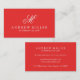 An elegant, minimal business card that can be used for any industry. The business card features a fancy script custom monogram, white text, red background, and simple layout to showcase your name/business name. Change the font style, move text, and more, by clicking on the Customize It button.