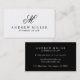 An elegant, minimal business card that can be used for any industry. The business card features a fancy script custom monogram, black text, white background, and simple layout to showcase your name/business name. Change the font style, move text, and more, by clicking on the Customize It button.