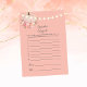 Enjoy this elegant, autumn floral, baby girl baby shower game, Guess the baby food. String lights on front with small pumpkin and flowers under pumpkin. Pinks, corals, and yellow florals with a blush pink background. Templates provided on back.