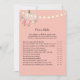 Enjoy this elegant, autumn floral, baby girl baby shower game, Over or Under. String lights on front with small pumpkin and flowers under pumpkin. Pinks, corals, and yellow florals with a blush pink background. Templates provided on back.