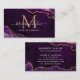 Elegant Purple Agate Gold Glitter Script Monogram Business Card