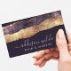 Make a bold and sophisticated statement with this stunning business card. The dramatic deep purple background is accented with a shimmering gold glitter wave pattern, creating a luxurious and eye-catching design. Your name and services are elegantly displayed in a crisp white font, ensuring a clean and professional look. Perfect for hair stylists, makeup artists, and other beauty professionals who want to showcase their style and expertise.
