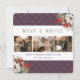 Elegant purple photo newlywed Christmas card featuring winter botanicals. Easily personalize this botanical Christmas card with your photos, text, and your family name.