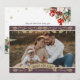 Elegant purple photo New Year card featuring a watercolor painting of poinsettia, holly and berries. Easily personalize this purple holiday card with your photo and text.