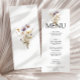 A boho wedding menu with purple and yellow and green branches wildflowers bouquet garden wedding menu. With watercolor yellow and light purple bohemian greenery flowers and branches. On white elegant background with bold menu wording. Grab it along with other items from our wedding collection and get everything coherent.