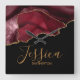 Elegant Purple Burgundy Gold Marble Agate Name Square Wall Clock
