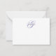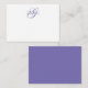 The monogram note card features a refined and minimalist design. It showcases a large, elegant cursive initial in purple, paired with a bold, uppercase name in black text, placed centrally across the initial.